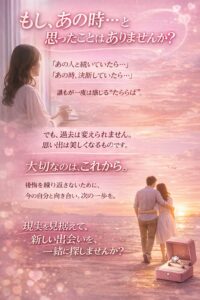 もし、あの時…と思ったことはありませんか?「あの人と続いていたら…」「あの時、決断していたら…」誰もが一度は感じる“たられば”。でも、過去は変えられません。思い出は美しくなるものです。大切なのは、これから。後悔を繰り返さないために、今の自分と向き合い、次一歩を。現実を見据えて、新しい出会いを一緒に探しませんか?